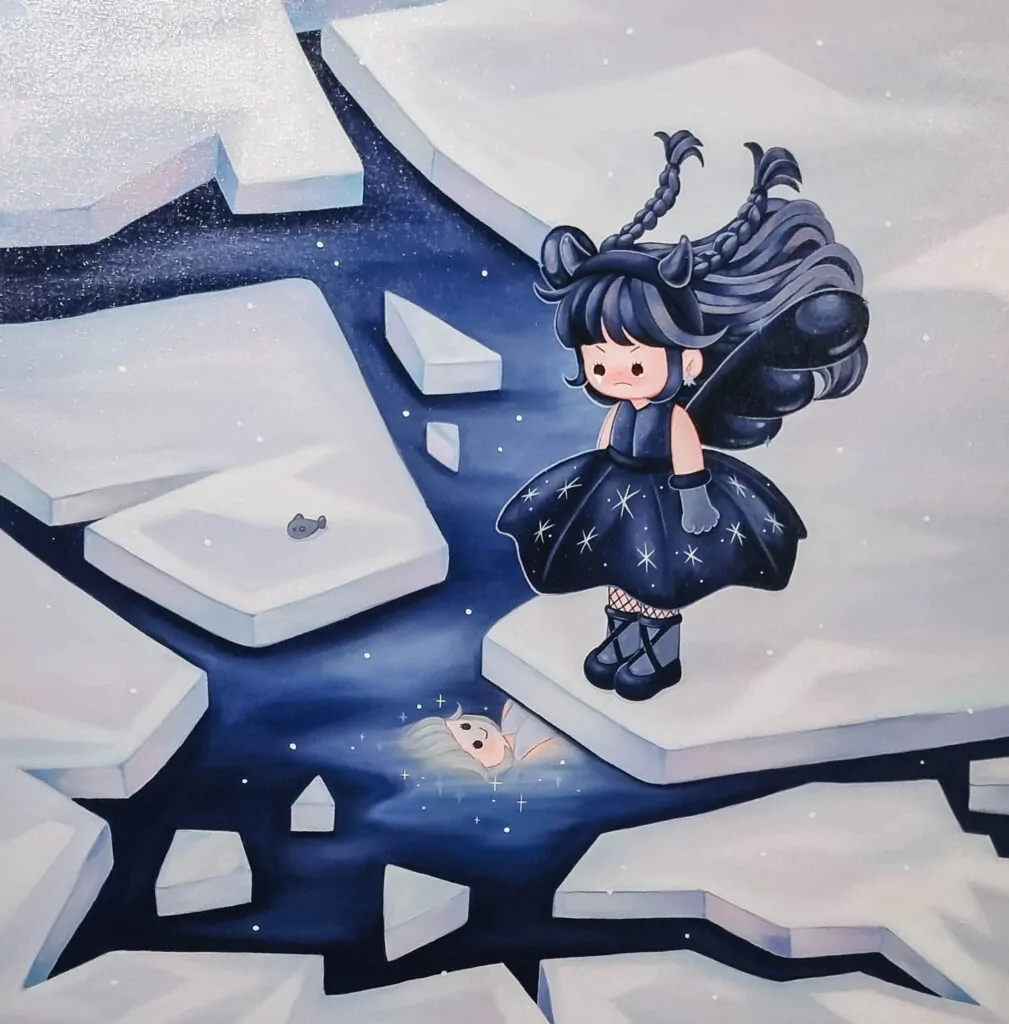 ถัดมาเราได้คุยกับคุณอาร์ท คุณอาร์ท บอกว่าเขาได้รับโจทย์มาว่า ‘หิมะ’ เขาก็ใช้เวลาคิดเหมือนกันว่าหิมะสำหรับเขาคืออะไรก่อนจะถ่ายทอดออกมาเป็นงาน และสุดท้าย “ความเหงา” คือคำตอบของโจทย์นี้