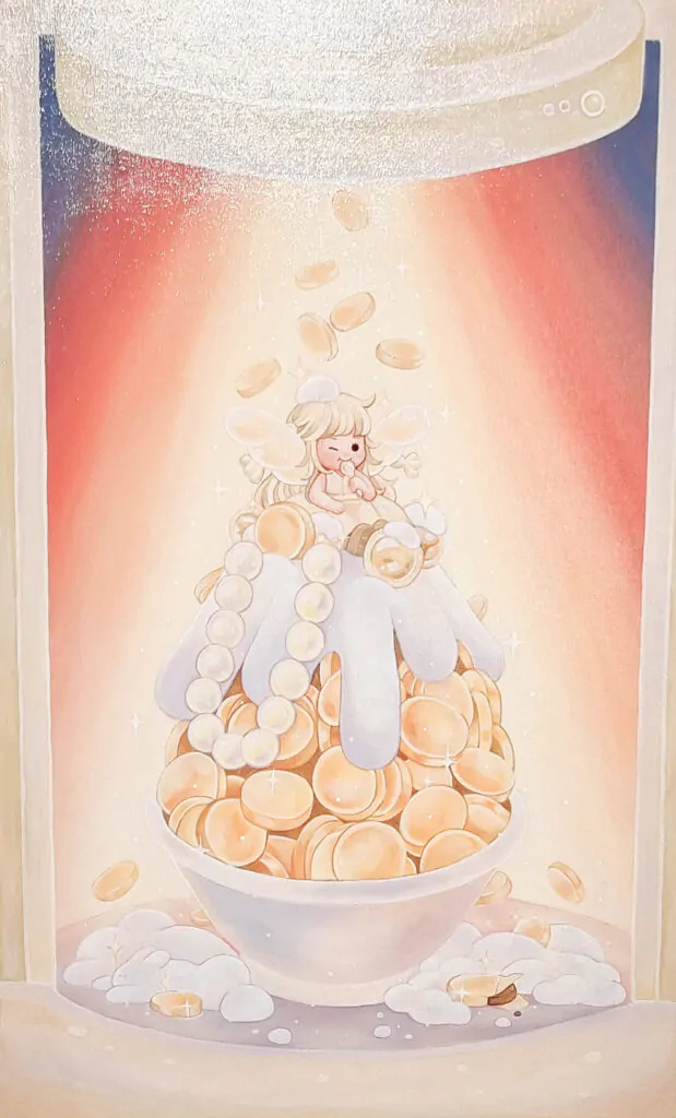 ของคุณ ZitoHsu ผมไม่ได้มีโอกาสได้พูดคุยกับศิลปินเลยไม่รู้ว่าจะเอาอะไรมาเล่า แต่แอบเอารูปผลงานมาโชว์ละกันครับ เป็นผลงานที่ดูน่ารักและหนุนใจ ศิลปินค่อนข้างเป็นที่รู้จักในวงการอยู่แล้ว ทำให้ผลงานของเขา Sold out อย่างรวดเร็ว